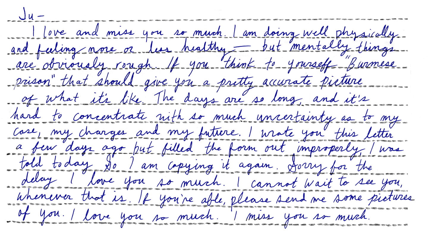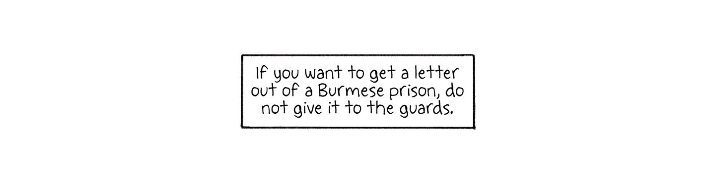 If you want to get a letter out of a Burmese prison, do not give it to the guards.