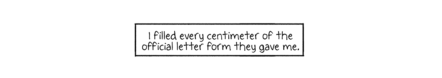 I filled every centimeter of the official letter form they gave me.