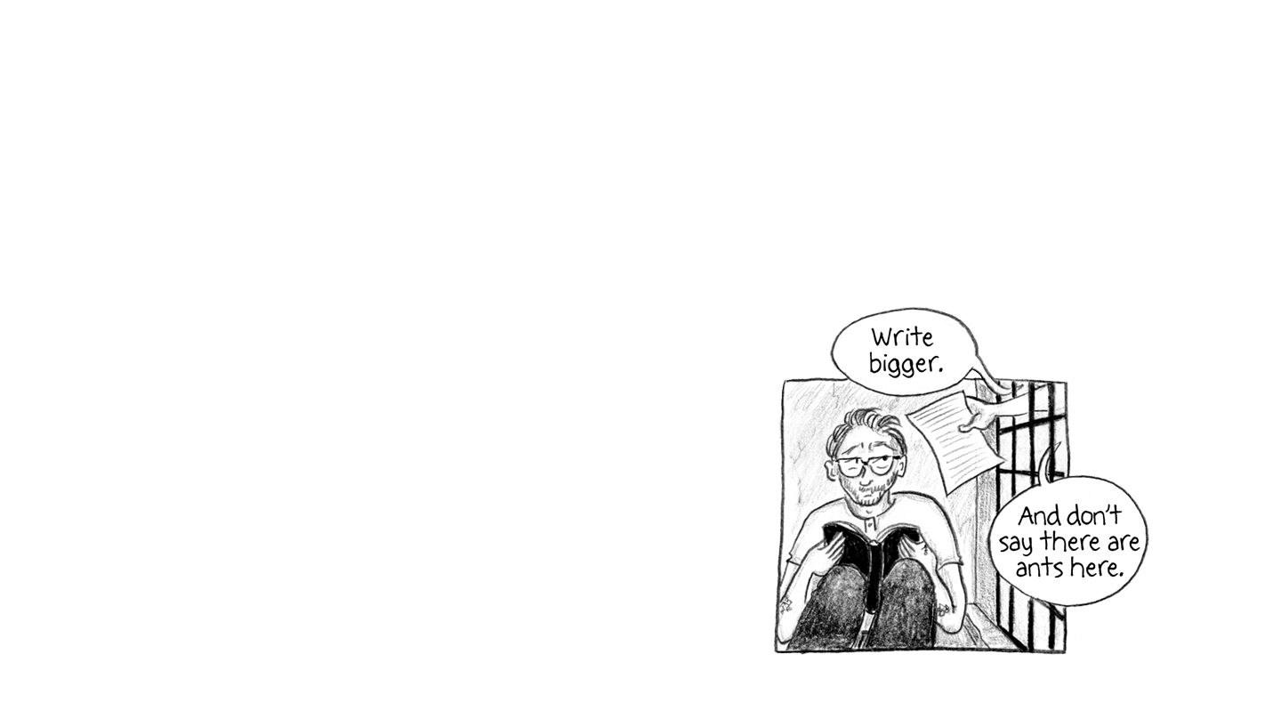 “Write bigger. And don’t say there are ants here.”