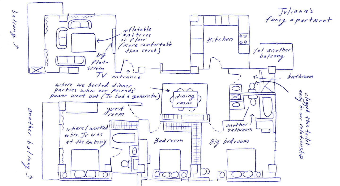 Juliana lived alone in an airy, three-bedroom apartment paid for by her country's foreign service.