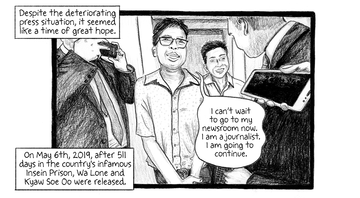On May 6th, 2019, after 511 days in the country's infamous Insein Prison, Wa Lone and Kyaw Soe Oo were released.