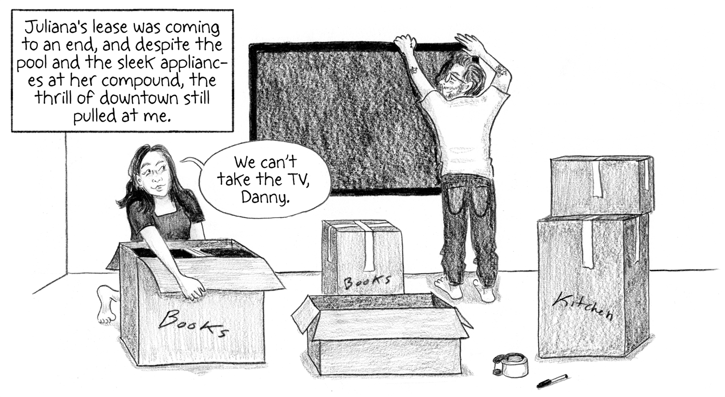 Juliana's lease was coming to an end, and despite the pool and the sleek appliances at her compound, the thrill of downtown still pulled at me.