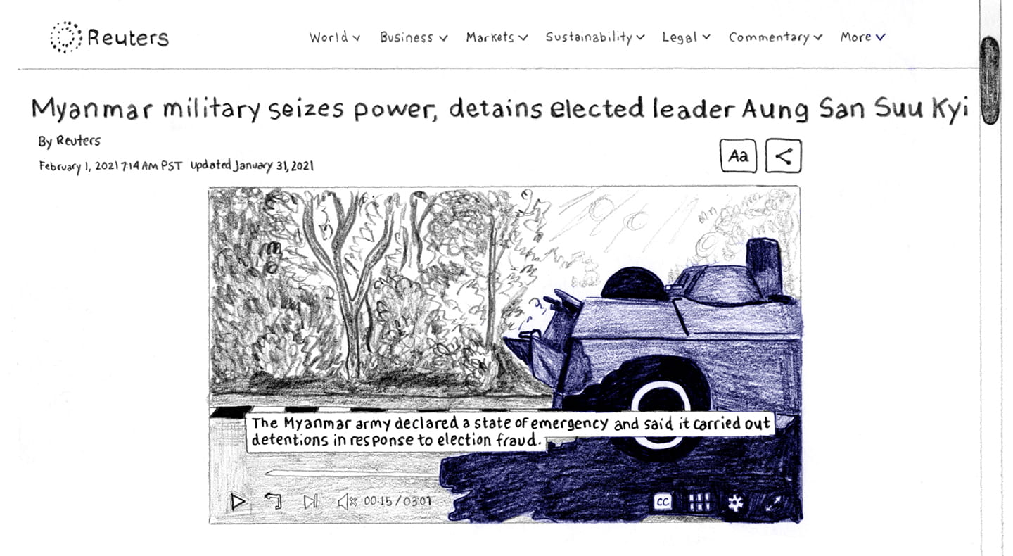 Breaking News: Myanmar leader is detained amid coup. Military declares state of emergency."