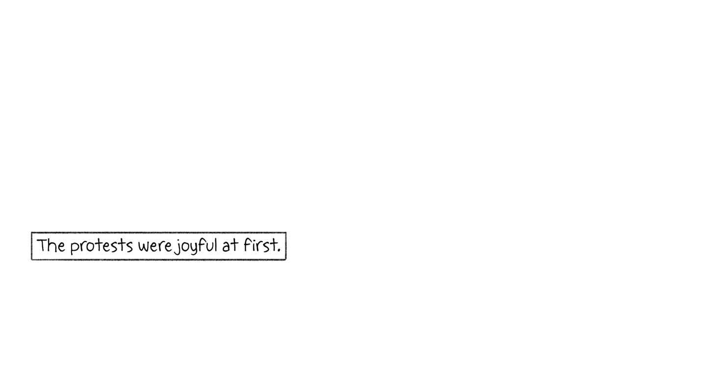 The protests were joyful at first.