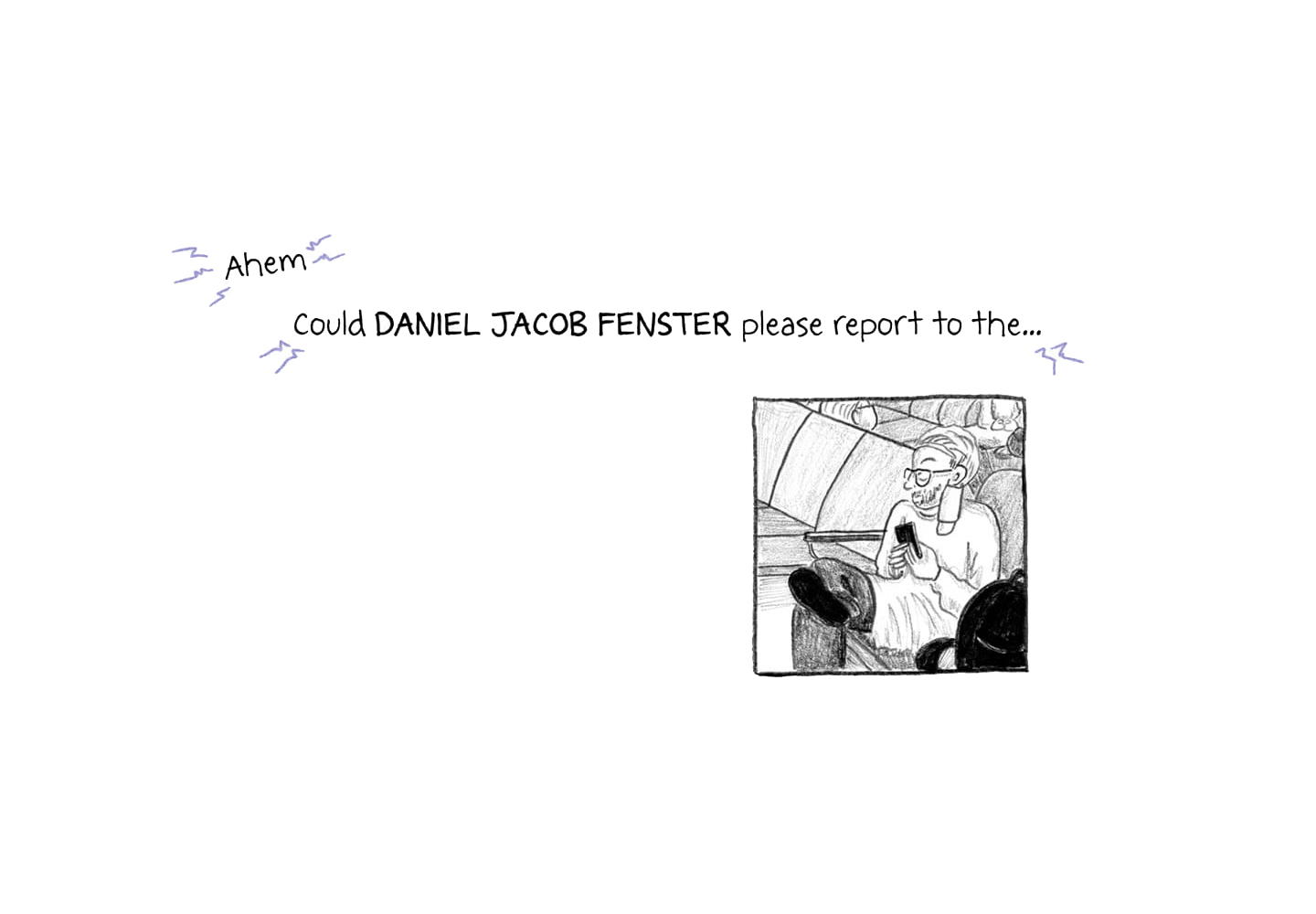 “Ahem… Could DANIEL JACOB FENSTER please report to the…”