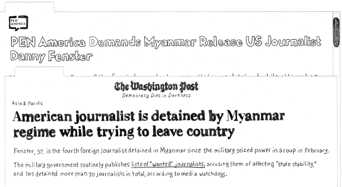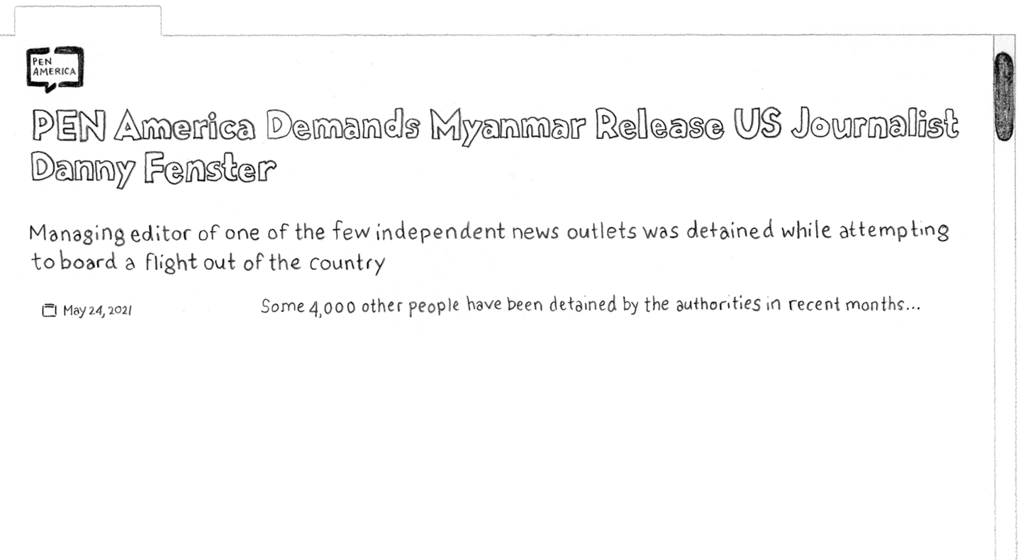 PEN America Demands Myanmar Release US Journalist Danny Fenster “Managing editor of one of the few independent news outlets was detained while attempting to board a flight out of the country Some 4,000 other people have been detained by the authorities in recent months…”