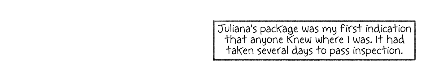 Juliana's package was my first indication that anyone knew where I was. It had taken several days to pass inspection.