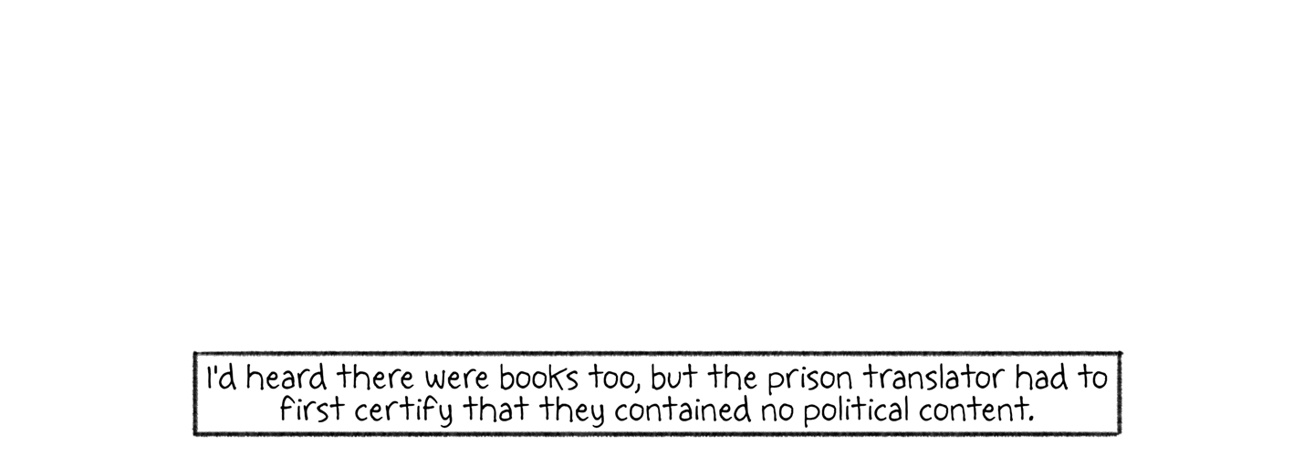 I'd heard there were books too, but the prison translator had to first certify that they contained no political content.