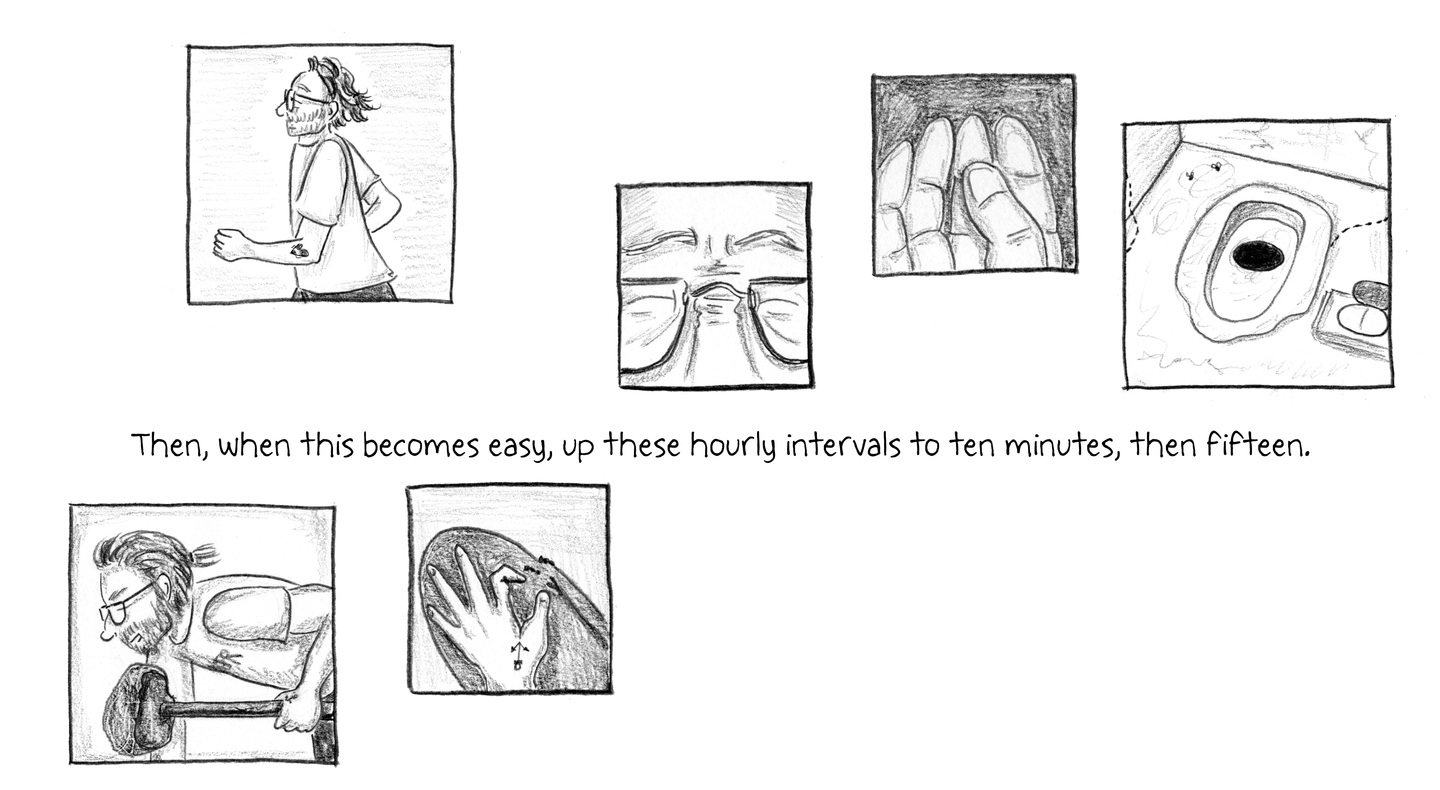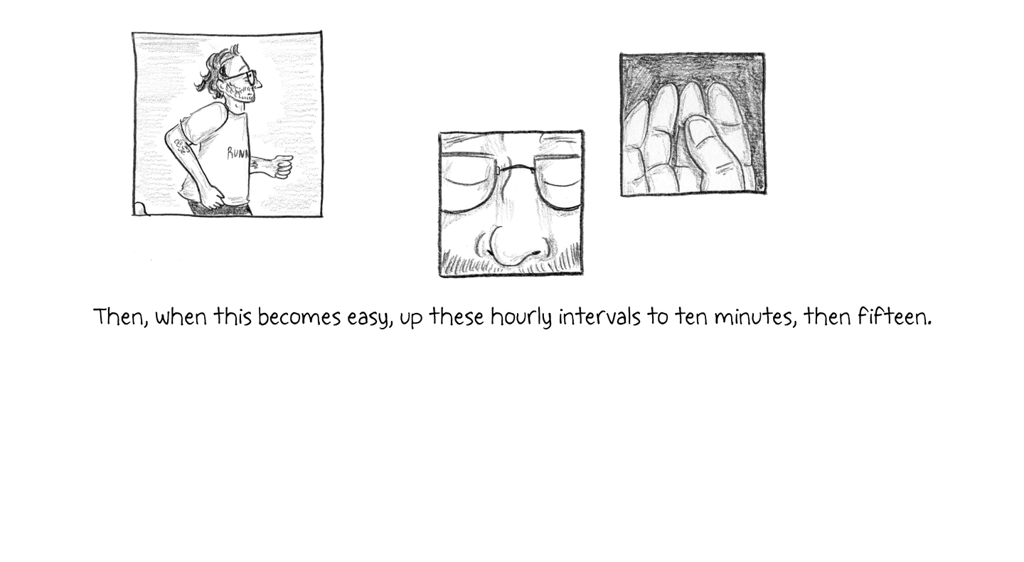Then, when this becomes easy, up these hourly intervals to ten minutes, then fifteen.”