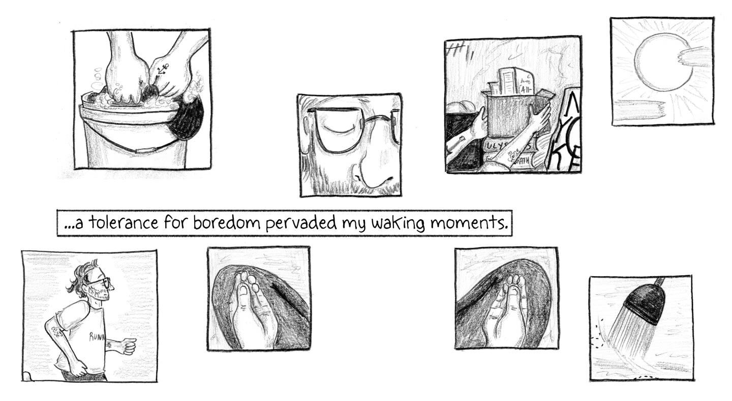 …a tolerance for boredom pervaded my waking moments.