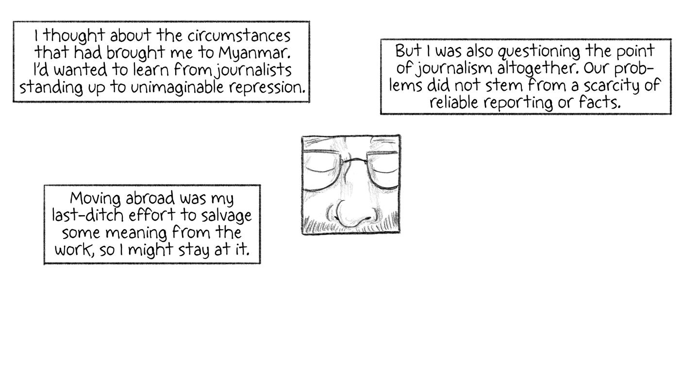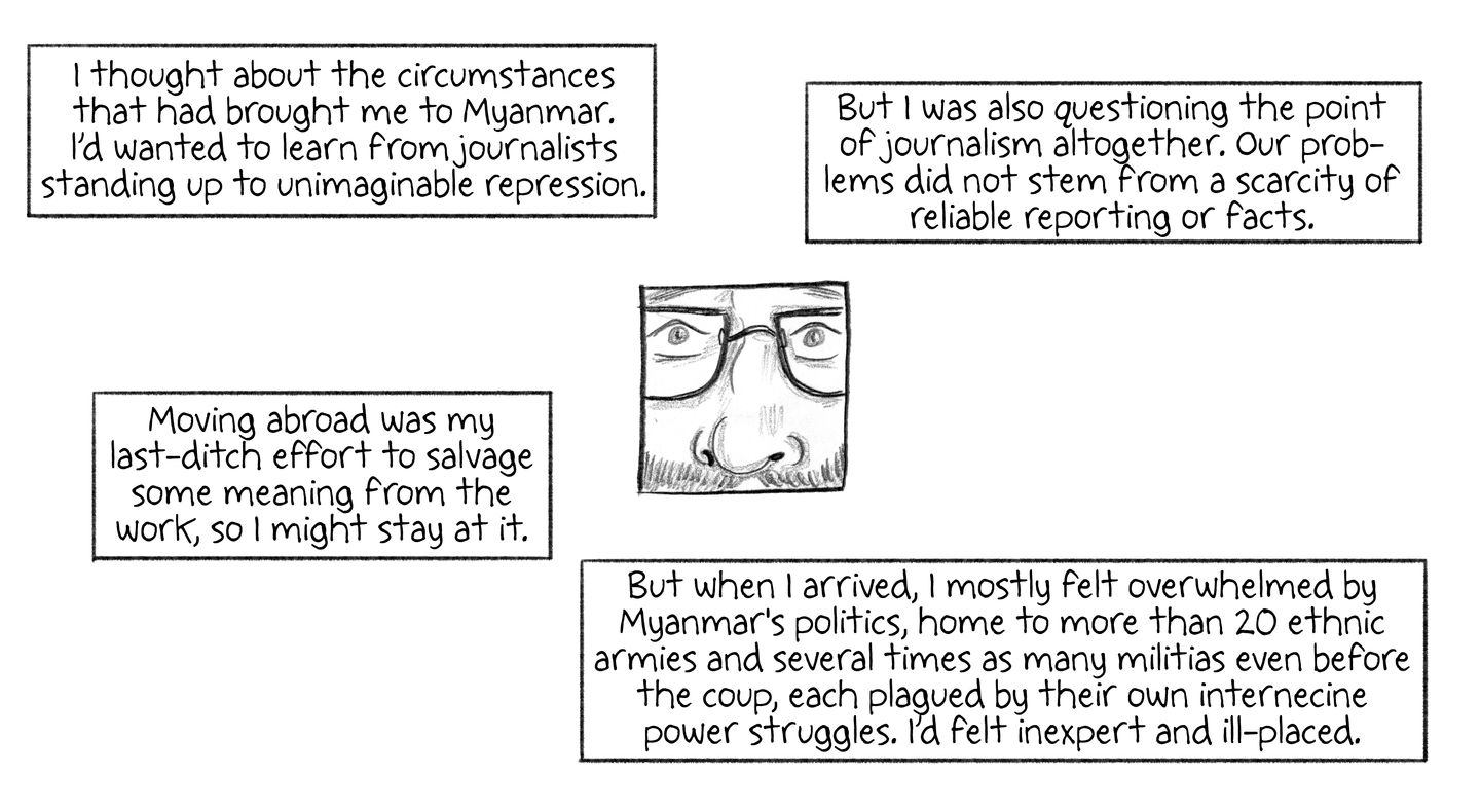 I thought about the circumstances that had brought me to Myanmar. I'd wanted to learn from journalists standing up to unimaginable repression.
