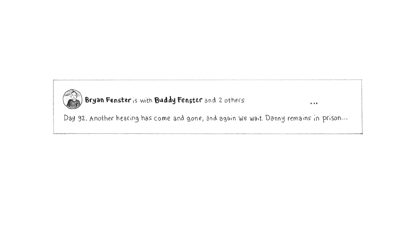 “Bryan Fenster is with Buddy Fenster and 2 others Day 92. Another hearing has come and gone, and again we wait. Danny remains in prison..”