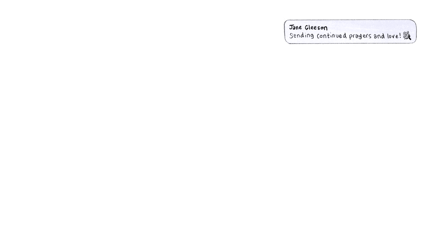 “Jane Gleeson Sending continued prayers and love!”