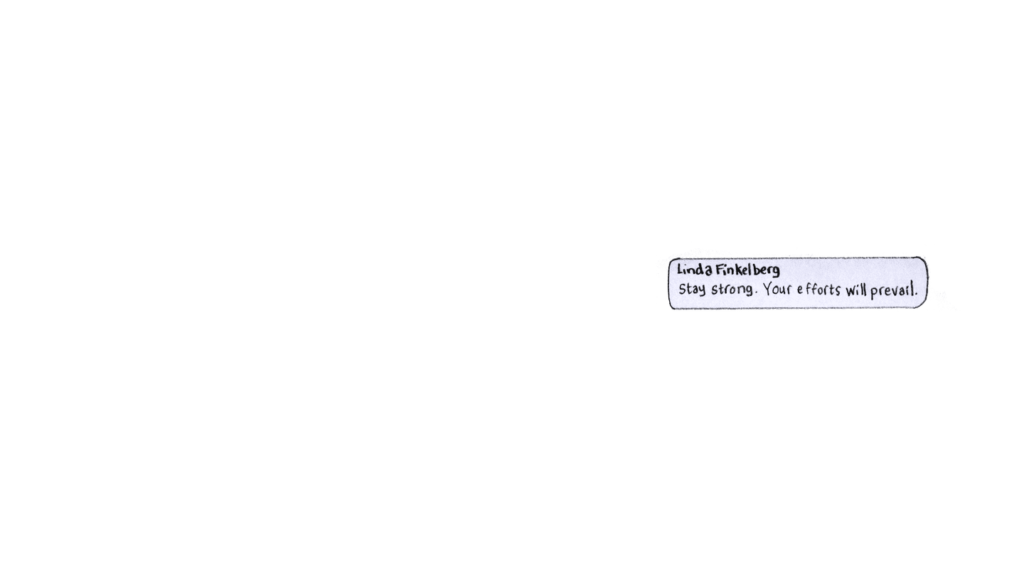 “Linda Finkelburg Stay strong. Your efforts will prevail.”
