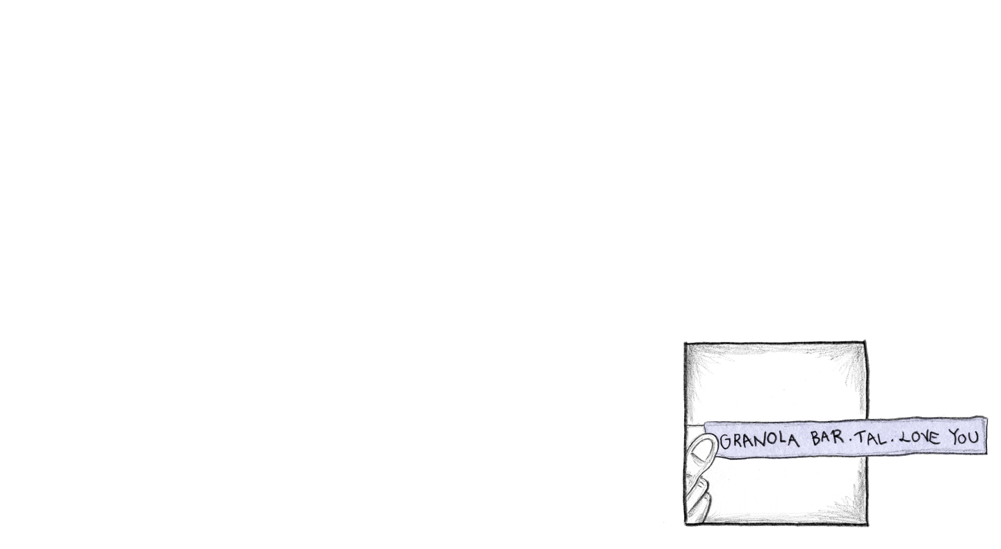 Note: “Granola bar. TAL. Love you.”