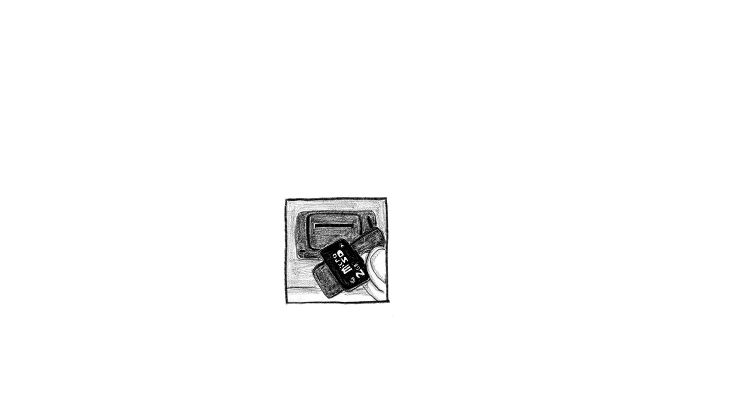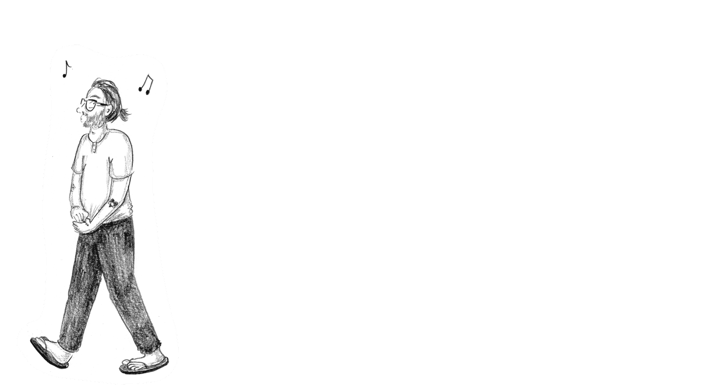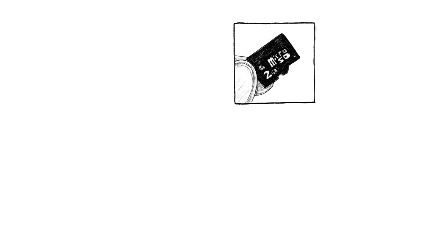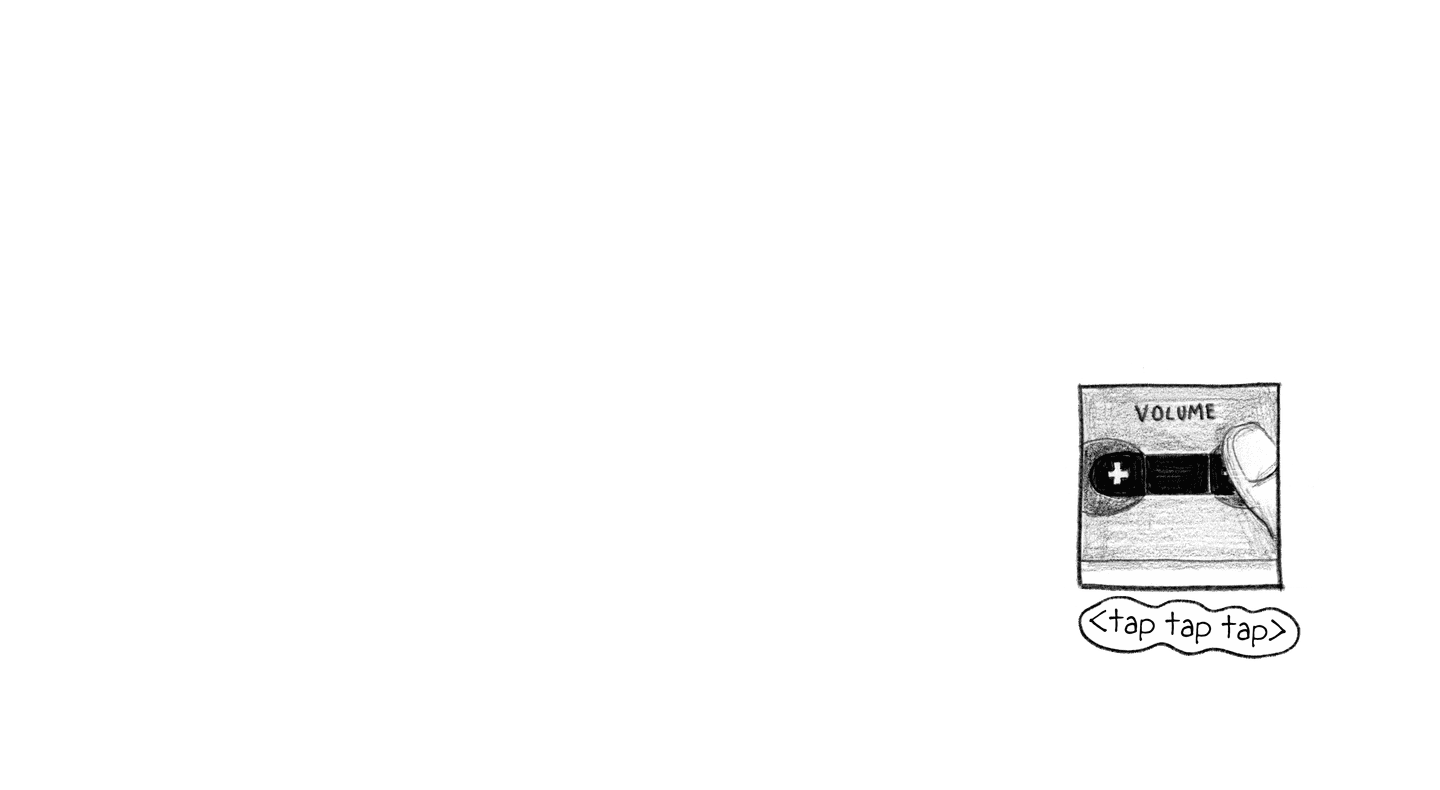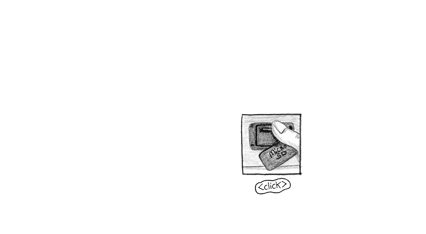 <slide> [Danny inserts the microSD card into the MP3 player and turns up the volume.] <click> <tap tap tap>