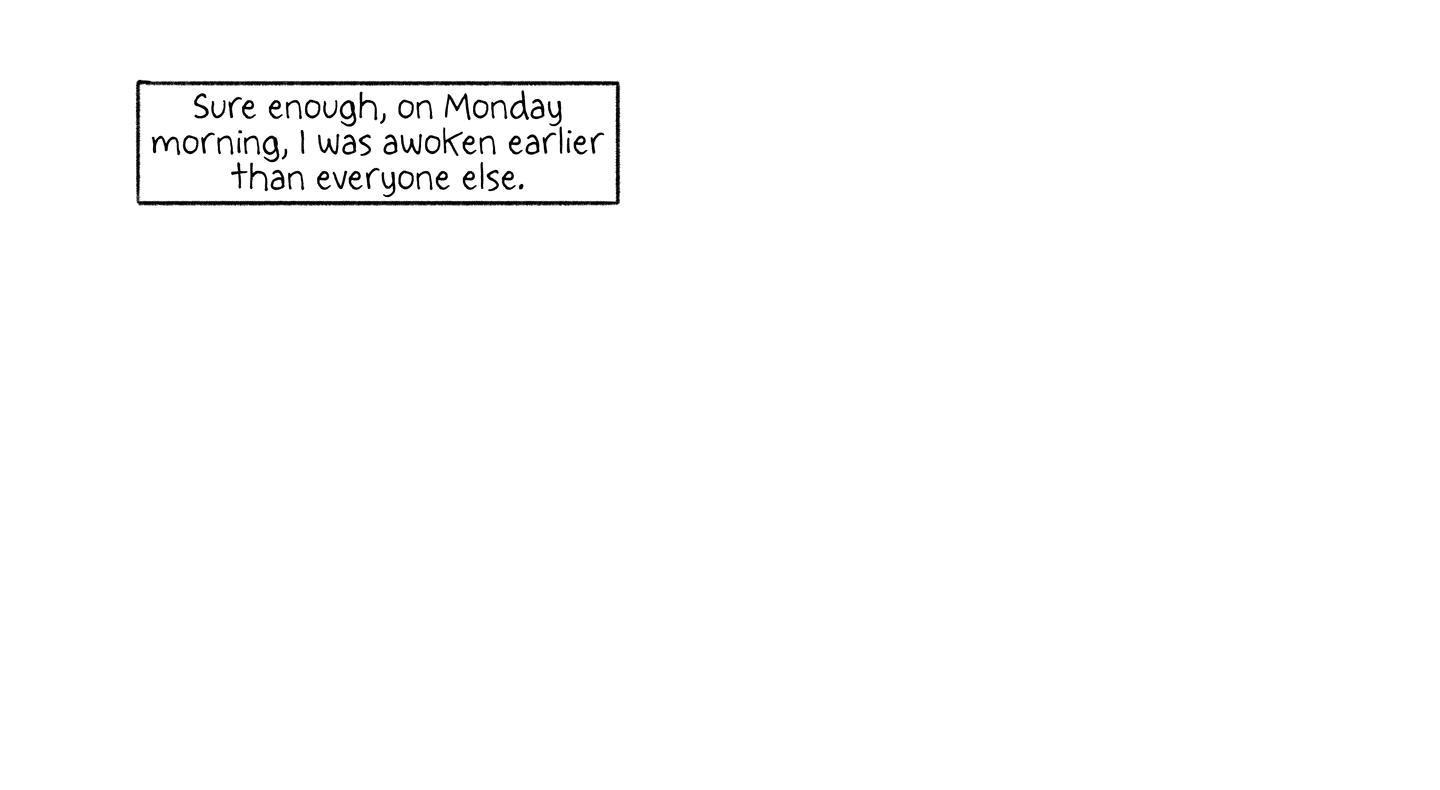 Sure enough, on Monday morning, I was awoken earlier than everyone else.
