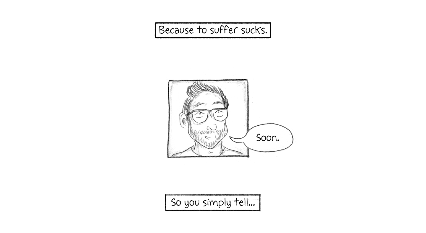 Because to suffer sucks, so you simply tell…